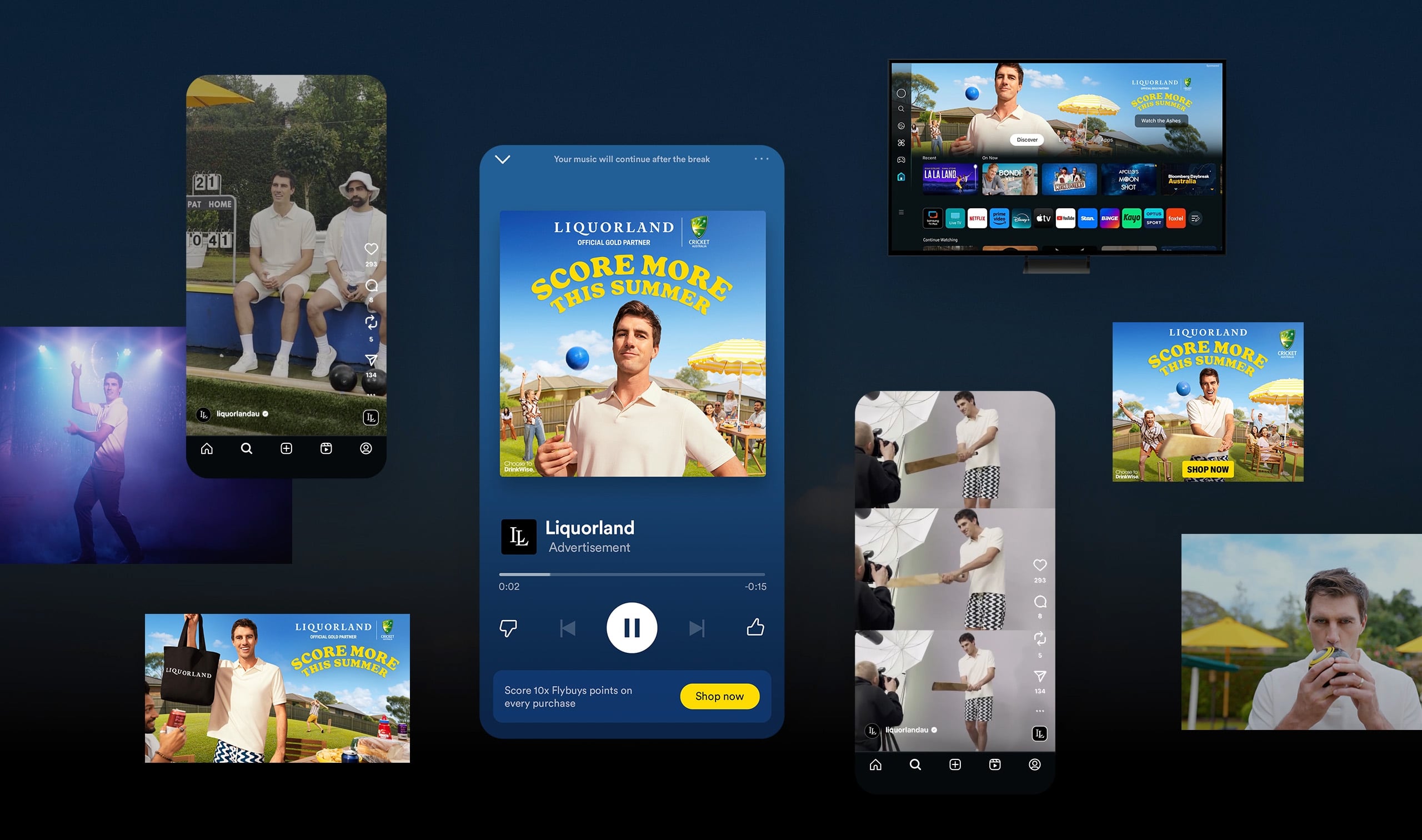 Supported by tactical Flybuys trade promotions in store, and rollout across broadcast, digital, and Cricket Australia integrations, the campaign connects culture with hard working value messaging to keep Liquorland top of mind all summer long.