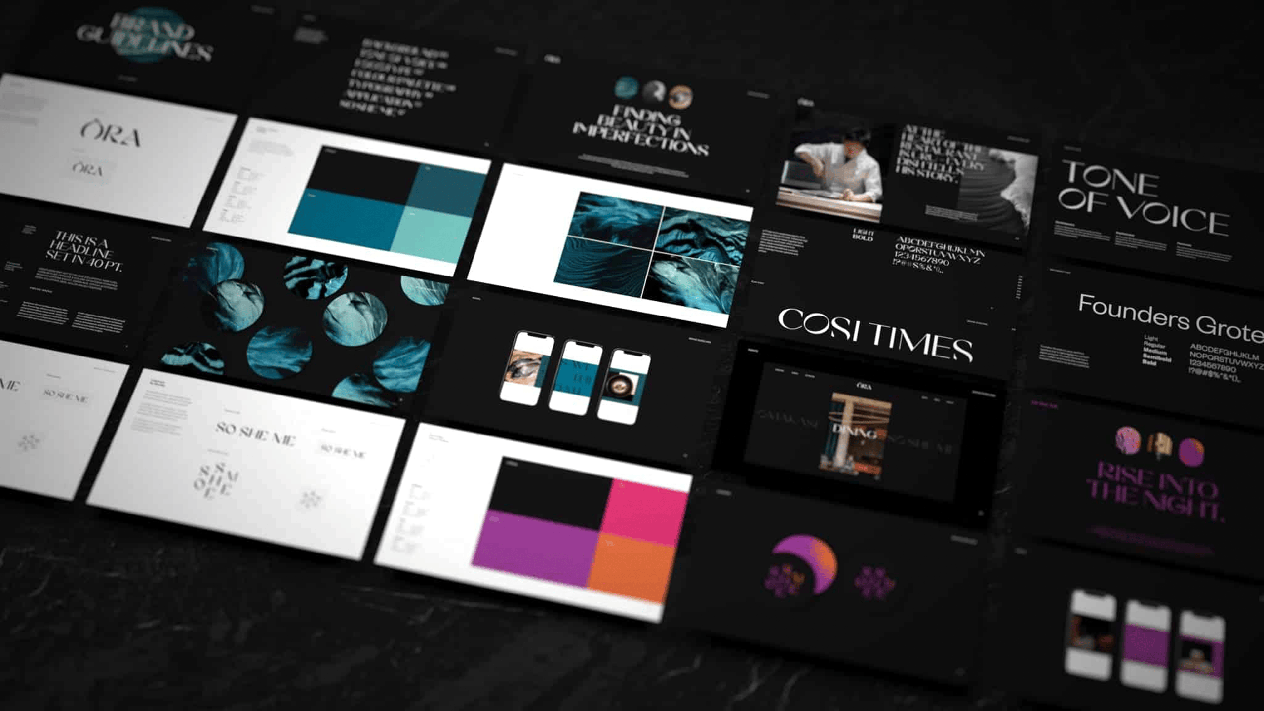 Ōra’s brand identity is sophisticated and refined, reflecting a deep commitment to craftsmanship and detail.Inspired by the ocean, the identity embraces the beauty of imperfection found in the natural world, while expressing Ōra’s expertise in seafood. Oceanic tones flow throughout the visual system, introducing a sense of natural warmth layered with considered, luxurious textures.